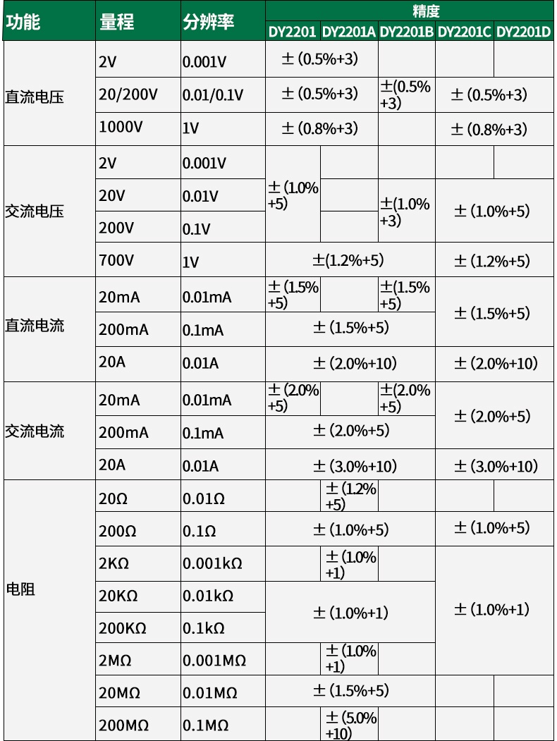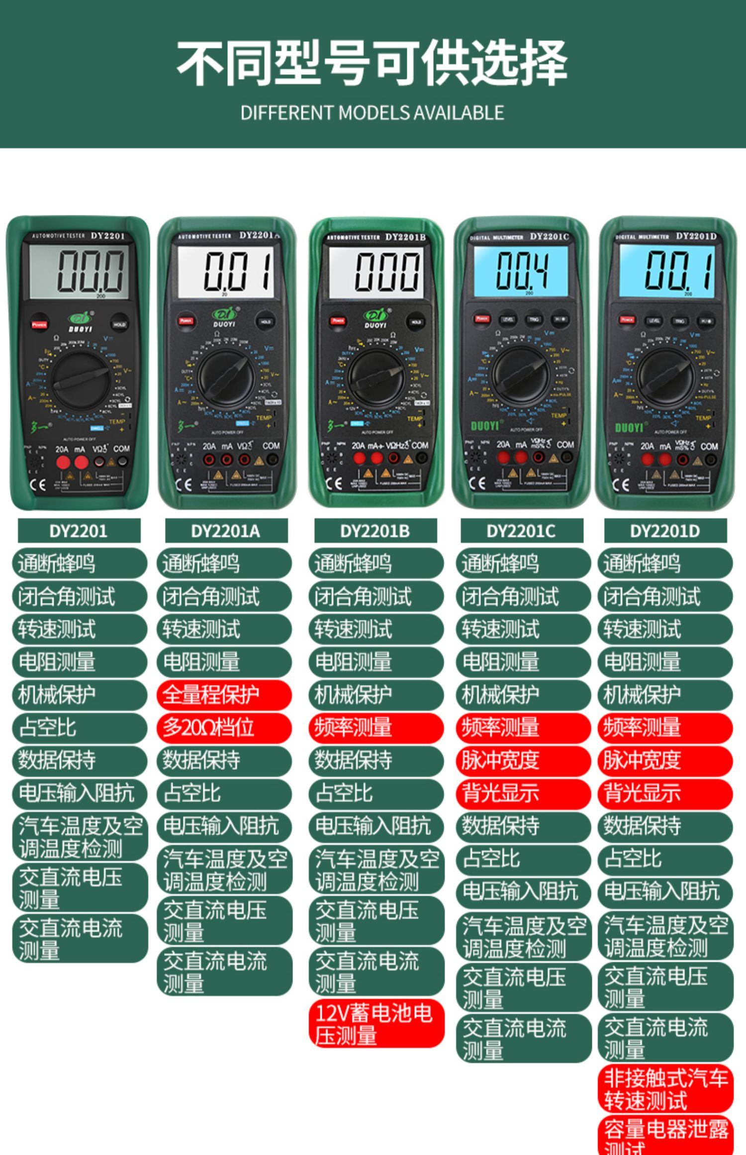DY2201系列多功能汽车检修万用表
