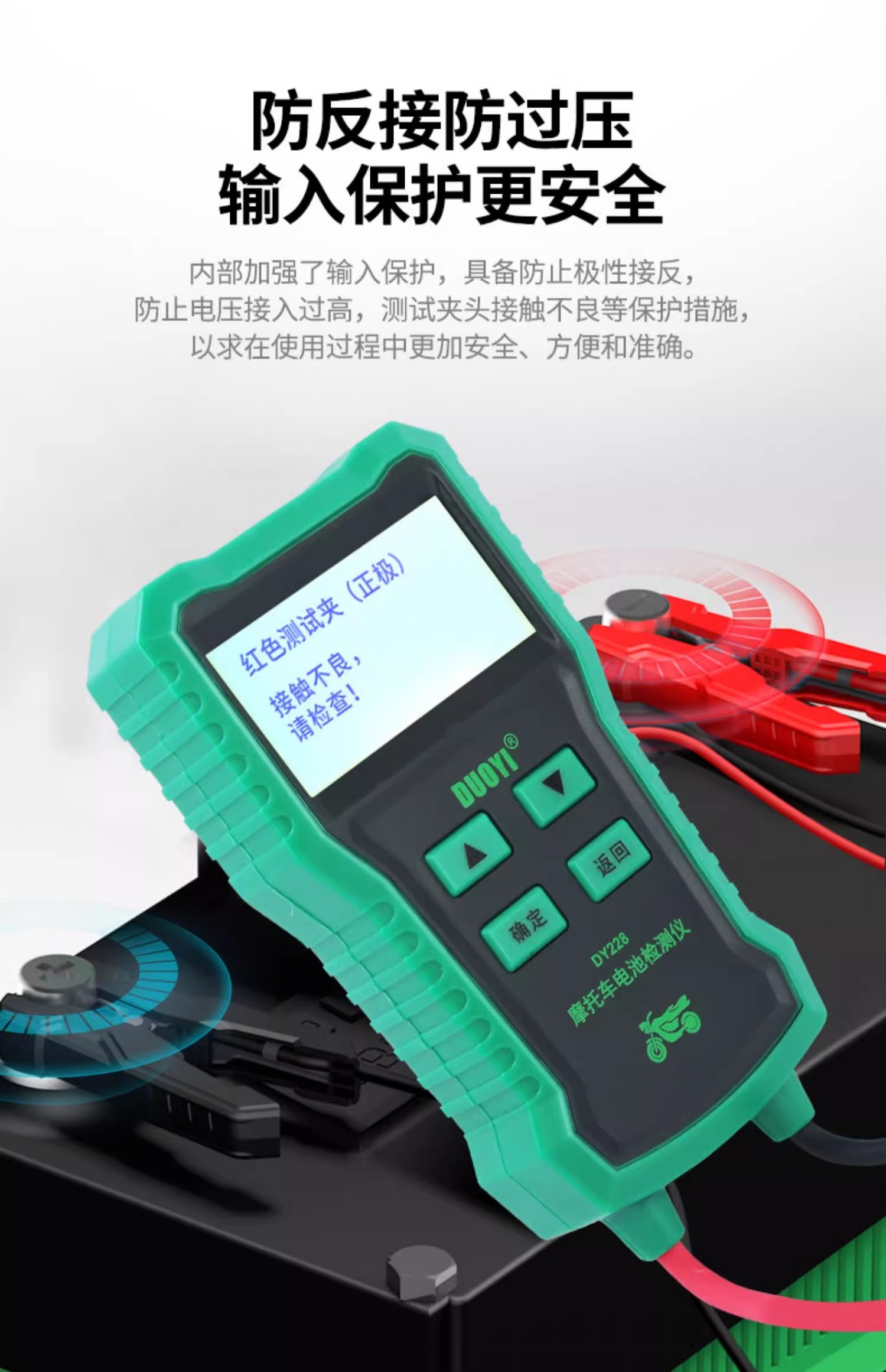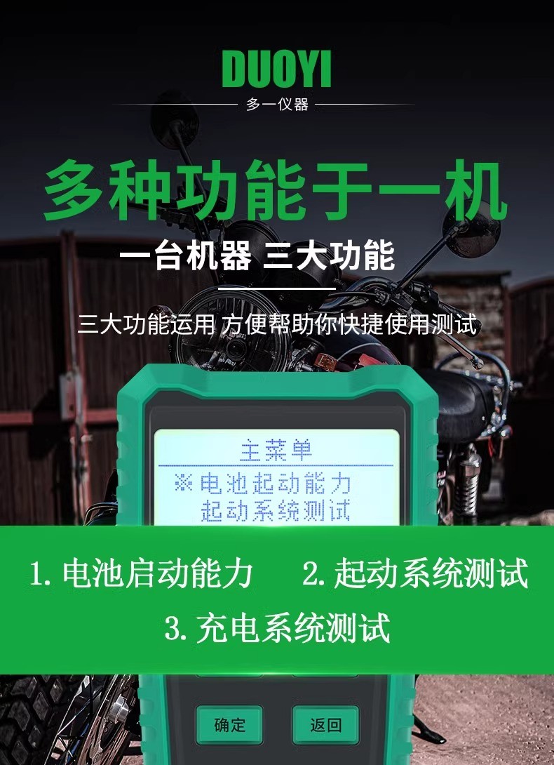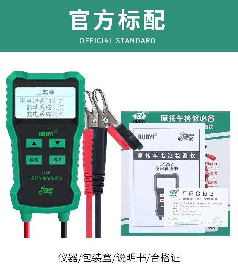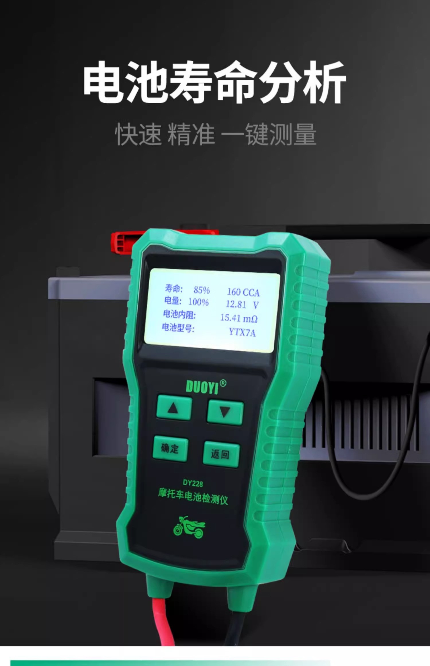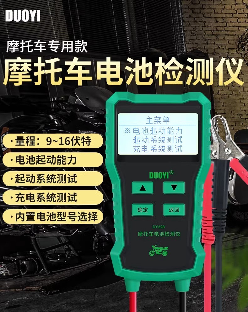 DY228摩托车蓄电池检测仪高精度多功能电瓶检测电池测试仪