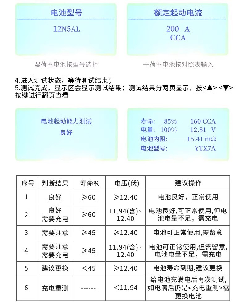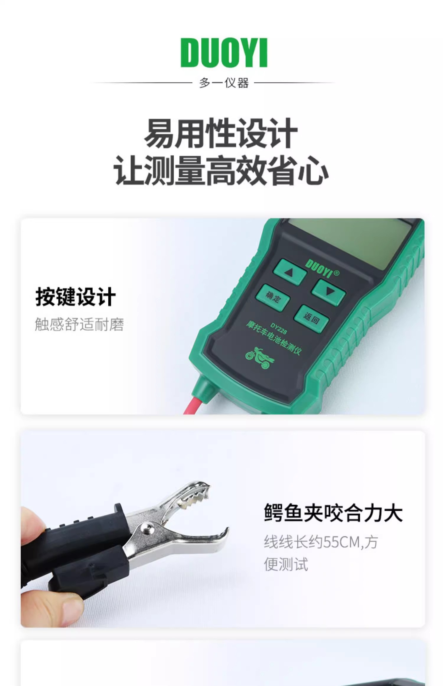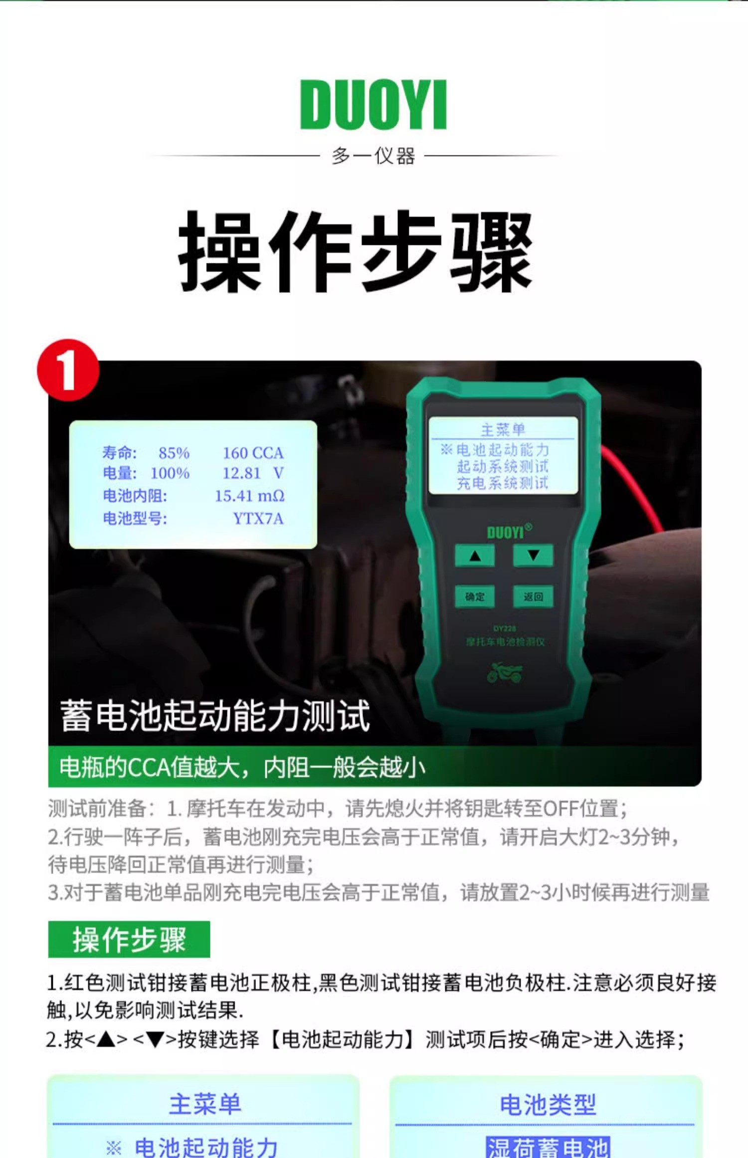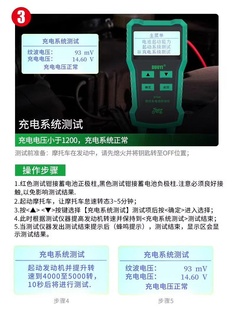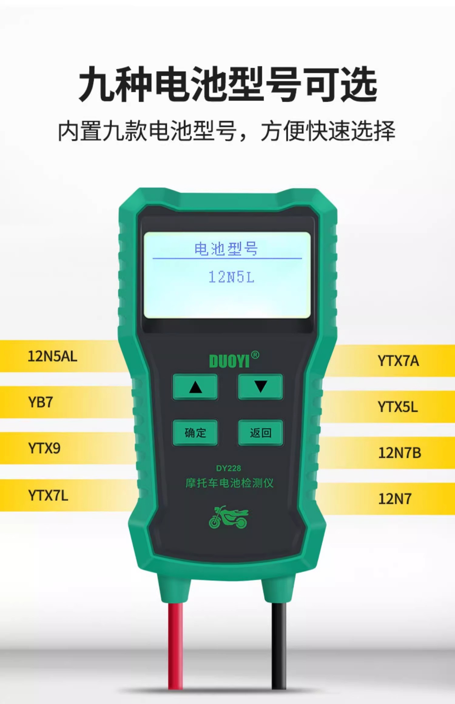 DY228摩托车蓄电池检测仪高精度多功能电瓶检测电池测试仪