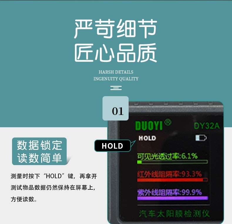 便携太阳膜测试仪多一DY32A红外线紫外线阻隔率透光率汽车膜检测