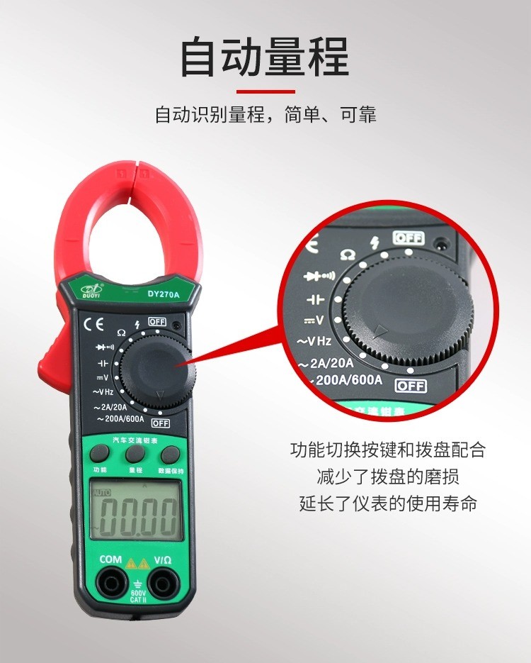 DY270A/DY270B汽车漏电测试仪漏电检测仪漏电流钳表交直流漏电流钳表