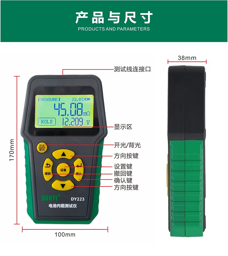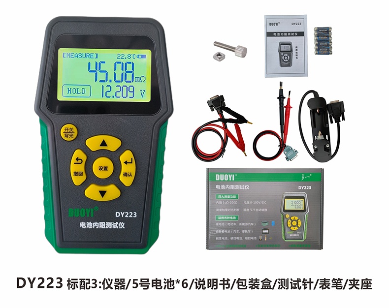 汽车铅酸蓄电池锂电池电瓶检测电压测量内阻检测仪DY223
